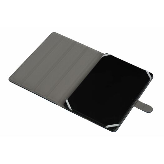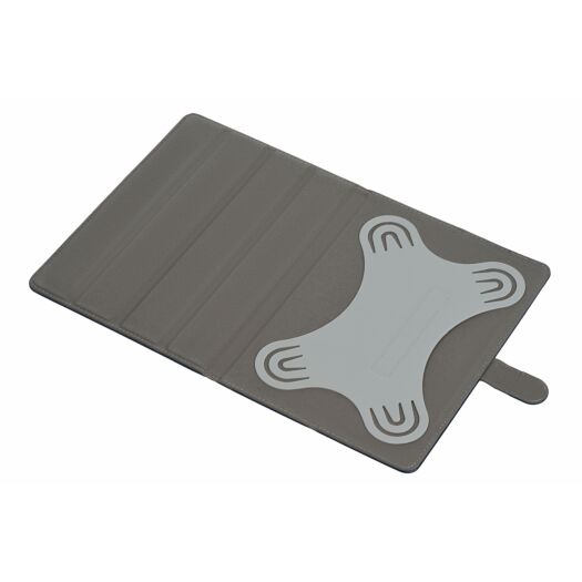 Універсальна обкладинка для планшетів та електронних книг. Зовнішня частина виконана з якісної PU шкіри, всередині м’яка підкладка з мікрофібри. У закритому положенні чохол фіксується на магнітну застібку. Для встановлення планшету передбачено спеціальне силіконове кріплення. Чохол має положення для роботи, читання і перегляду відео.