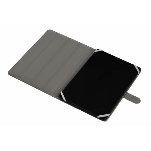 Універсальна обкладинка для планшетів та електронних книг. Зовнішня частина виконана з якісної PU шкіри, всередині м’яка підкладка з мікрофібри. У закритому положенні чохол фіксується на магнітну застібку. Для встановлення планшету передбачено спеціальне силіконове кріплення. Чохол має положення для роботи, читання і перегляду відео.