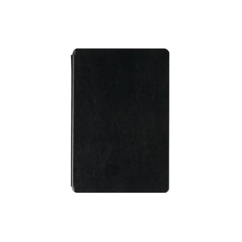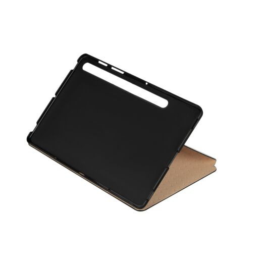 Зовнішня частина обкладинки виконана з екошкіри, внутрішня – з мікрофібри, а фіксатор з полікарбонату. Завдяки спеціальним рельєфним насічках на внутрішній пластикової частині, стенд може бути встановлений в будь-яке зручне положення. Обкладинка фіксується за допомогою магніту.