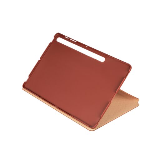 Зовнішня частина обкладинки виконана з екошкіри, внутрішня – з мікрофібри, а фіксатор з полікарбонату. Завдяки спеціальним рельєфним насічках на внутрішній пластикової частині, стенд може бути встановлений в будь-яке зручне положення. Обкладинка фіксується за допомогою магніту.