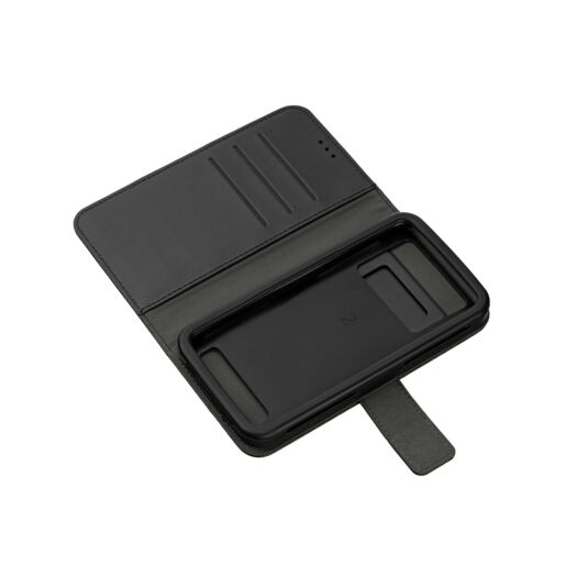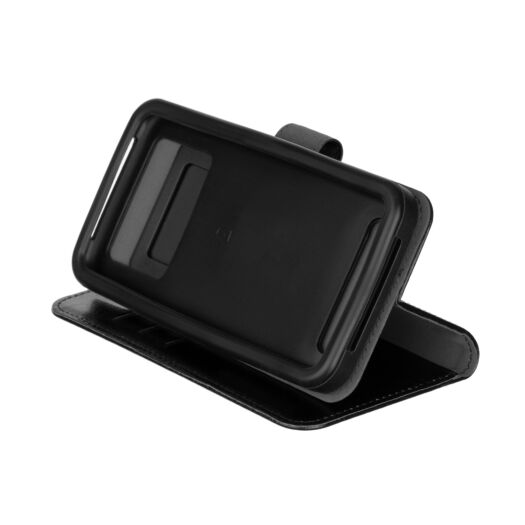 Зовні чохол виконаний із якісної гладкої PU шкіри, внутрішній шар з мікрофібри. Щільний силіконовий тримач для смартфона товщиною 2 мм стійкий до розтягування і щоденного зносу. Для зручного користування камерою є вбудований слайдер. Закритий чохол надійно фіксується магнітної застібкою. Чохол може бути використаний в режимі стенду для читання і перегляду відео. Усередині чохла зручне відділення для готівки і три слота для кредитних карт.