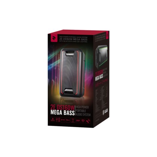 Більше ніж звичайна колонка! 2E DS160W Mega Bass сподобається поціновувачам яскравих та вражаючих вечірок. Сумарна потужність чотирьох динаміків становить 160 Вт, але якщо цього замало, просто натисніть кнопку Mega Bass.