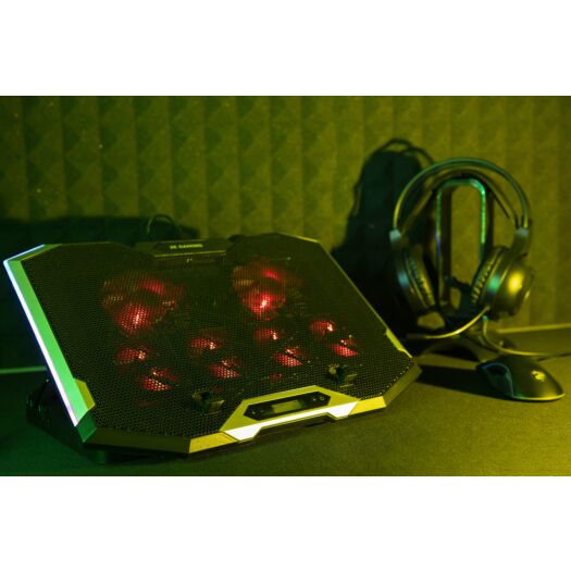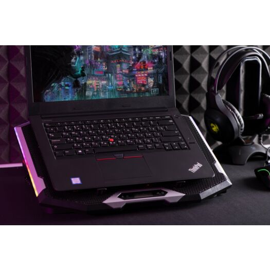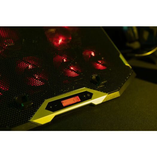 | Додатково | 7 режимов работы, 7 рівнів регулювання RGB-підсвічування, 7 уровней скорости вентилятора, LCD-дисплей, прогумовані ніжки, прогумовані холдери для фіксації ноутбука, тримач для смартфона |