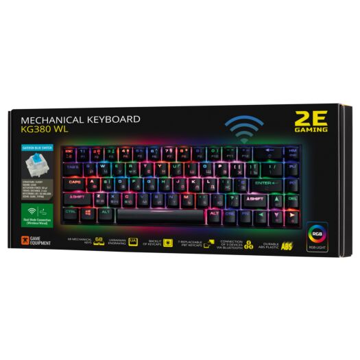 2E Gaming Клавіатура ігрова KG380 RGB 68key Gateron Blue Switch BT/USB Black Ukr