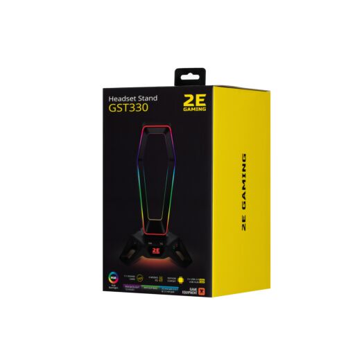 Функціональну підставку для гарнітури 2E Gaming GST330 7.1 розроблено для оптимізації ергономіки робочого місця. Це стильна модель, що є, крім іншого, USB-хабом і зовнішньою звуковою картою 7.1. Девайс оснащено яскравим контурним RGB-підсвічуванням (12 режимів). Підставка має масивний корпус і протиковзкі ніжки, що забезпечують надійність. Швидке ручне керування еквалайзером (три режими) і зміна режимів без встановлення ПЗ.