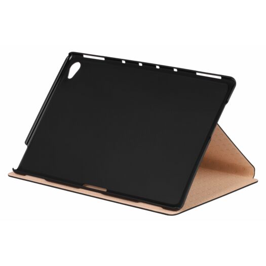 Зовнішня частина обкладинки виконана з екошкіри, внутрішня – з мікрофібри, а фіксатор з полікарборнату. Завдяки спеціальним рельєфним насічках на внутрішній пластикової частині, стенд може бути встановлений в будь-яке зручне положення. Обкладинка фіксується за допомогою магніту.
