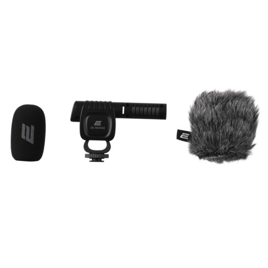 Професійний камерний мікрофон з вітровим захистом, джерелом живлення для роботи з функцією вбудованої звукової карти та пасивним стабілізатором.