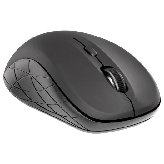 Бездротова ергономічна миша з матового пластика забезпечить комфортну роботу протягом тривалого часу. Виконана в класичному дизайні в чорному кольорі і з геометричними вставками на бічних сторонах миші. Швидкість курсора налаштовується під власні вимоги: 800, 1200 або 1600 DPI.
