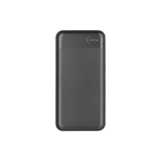 Power Bank для швидкої та надійної зарядки мобільних пристроїв у пластиковому корпусі з шорсткою текстурою та індикаторами заряду.