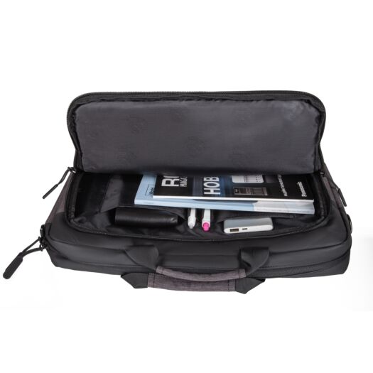Сумка для ноутбуків 15.6-16"" 2E Slant (2E-CBN9085GB). Легка і компактна сумка c класичними чорно-сірими кольорами підходить для щоденного використання. Виготовлена з міцного водовідштовхувального нейлону в комбінації з поліуретаном. Комплектується плечовим ременем з амортизуючою накладкою. На задній стінці є ремінь для фіксації сумки на ручці валізи.