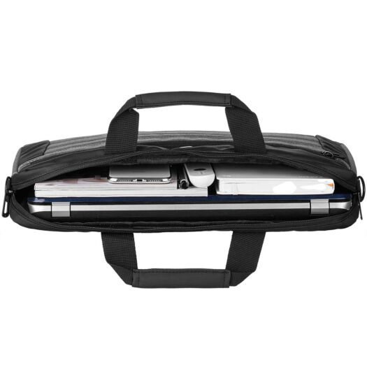 Стильне рішення для транспортування ноутбуків 15,6-16 діагоналі. Водовідштовхувальний нейлон і PVC тканину в комбінації з амортизирующим матеріалом дна і стінок сумки - ваш надійний супутник кожен день. Головне відділення має тканинну перегородку для документів. В кишені на лицьовій частині є тримачі для ручок і візиток, так само легко поміститься блок живлення, мишка, і ін. На задній частині є ремінь для фіксації сумки на ручці чемодана. Карабіни, петлі і замки блискавок виготовлені з металу. В комплекті - плечовий ремінь з амортизуючою накладкою і регулюється по довжині.