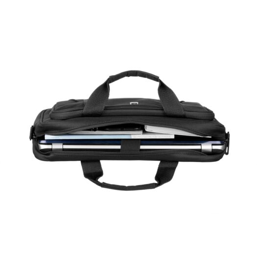 Сумка 2E Proessional 14 для ноутбуків з діагоналлю 13.3-14 дюймів. Класична сумка чорного кольору з вертикальним завантаженням ноутбука та безліччю відсіків та кишень. Водовідштовхувальний поліестер та м'який наповнювач дна та бічних стінок сумки надійно захистять ваш ноутбук.