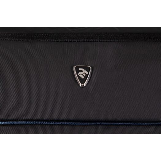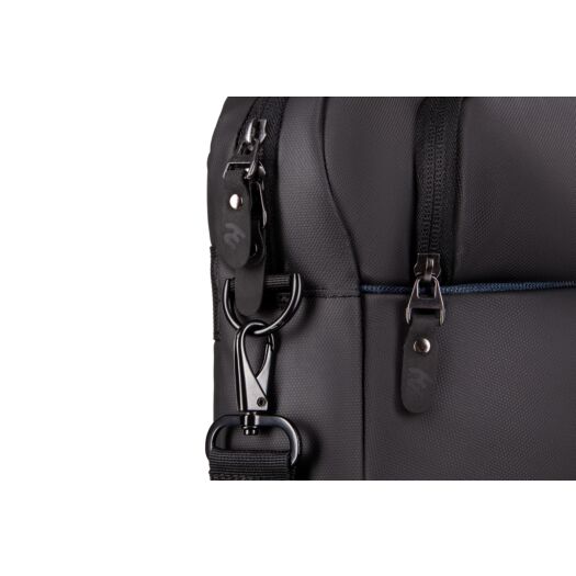 Компактна міська сумка призначена для щоденного використання. Виготовлена з чорного поліуретану з декоративними елементами темно-синього кольору. Комплектується регульованим плечовим ременем.