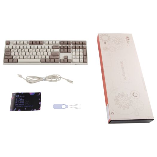 Механічна клавіатура Akko 3108 Steam Engine – це найкращий подарунок для всіх шанувальників всесвіту стимпанку та любителів ретродизайну в своєму ігровому просторі. Akko 3108 Steam Engine виготовлено в повнорозмірній розкладці з повним набором стрілок, цифрової клавіатури та мультимедійних клавіш. Вона підтримується новітнім з'єднанням USB-C та має вбудоване одночасне натискання n клавіш для підтримки найшвидшого друкування. Але фішкою є ковпачки клавіш – кейкапи з PBT, виготовлені у високому профілі SA, гранітно-сірому кольорі з відтінком випаленого помаранчевого.
