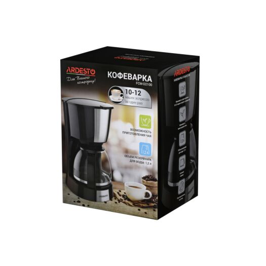 Крапельна кавоварка для меленої кави з потужністю 900 Вт, підігрівом кавника, знімним багаторазовим фільтром та можливістю приготування чаю.