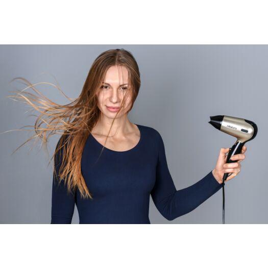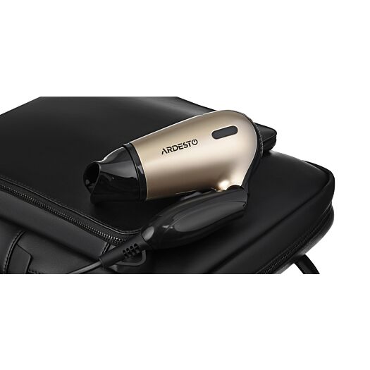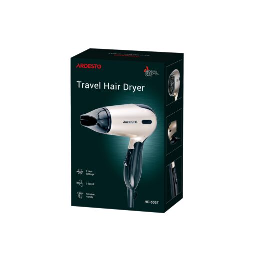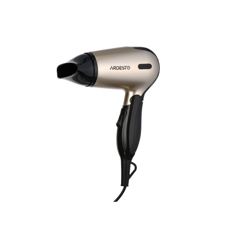 Дорожній фен зі складною ручкою, двома режимами роботи, захистом від перегріву та насадкою-концентратором.
