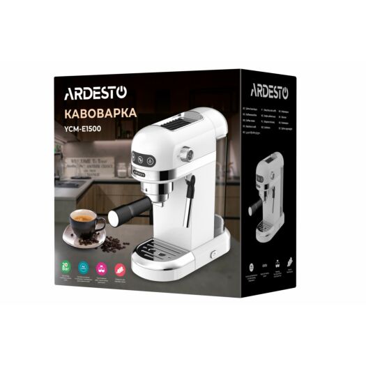 ARDESTO Кавоварка YCM-E1500 - еспресо ріжкова/1.4 л/італ. помпа 20 бар/сенсор. панель/PID контроль/1350 Вт/біла