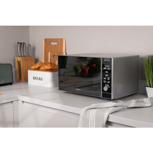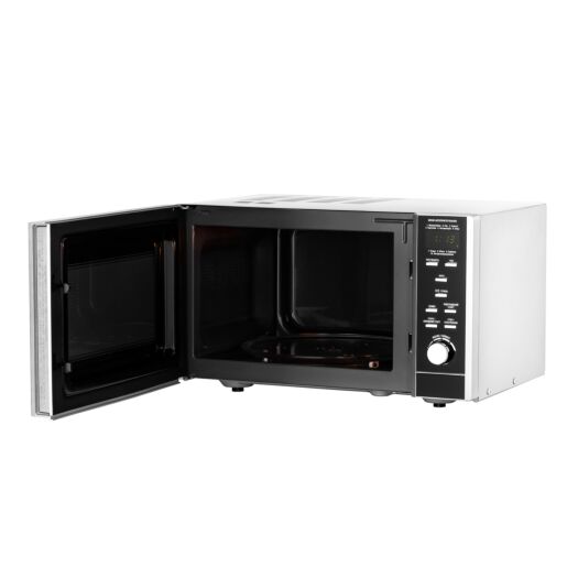 Мікрохвильова піч – багатофункціональний пристрій, який є в кожній оселі. Корпус печі виконано в універсальному сріблястому кольорі, а дверцята й панель керування з поворотним перемикачем – у чорному, тож модель пасуватиме до будь-якого інтер’єру кухні. Потужність пристрою – 900 Вт, зсередини ємна камера (23 л) вкрита емаллю, що забезпечує легкий догляд. Конструкцією передбачено бічне відкриття дверцят, для чого на панелі керування вбудовано спеціальну клавішу. Піч має електронне керування й широкий набір функцій і програм. Для рівномірного приготування страв GO-EGR923BL має систему поворотного столу діаметром 24,5 см.