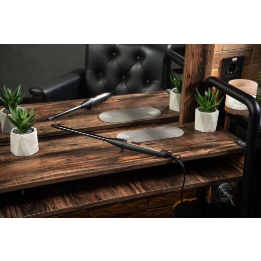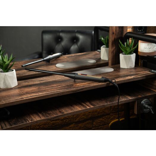 Пряма плойка діаметром 13 мм чорного кольору із золотистими елементами для створення «афрокучерів». Керування механічне.
