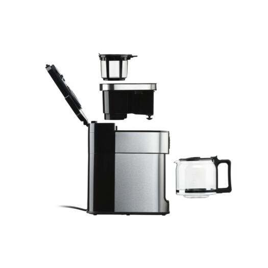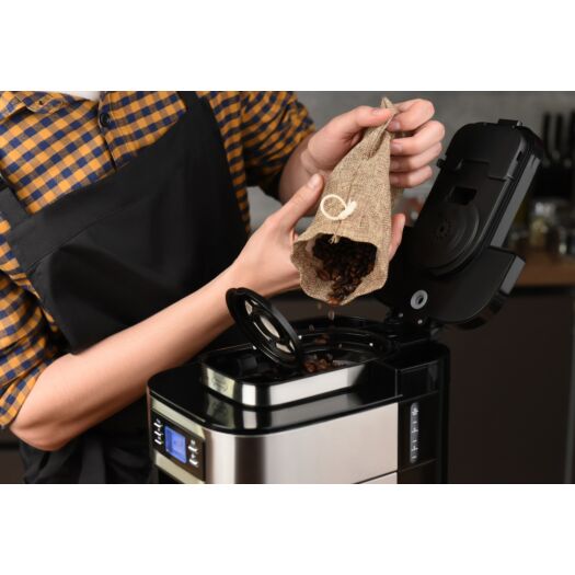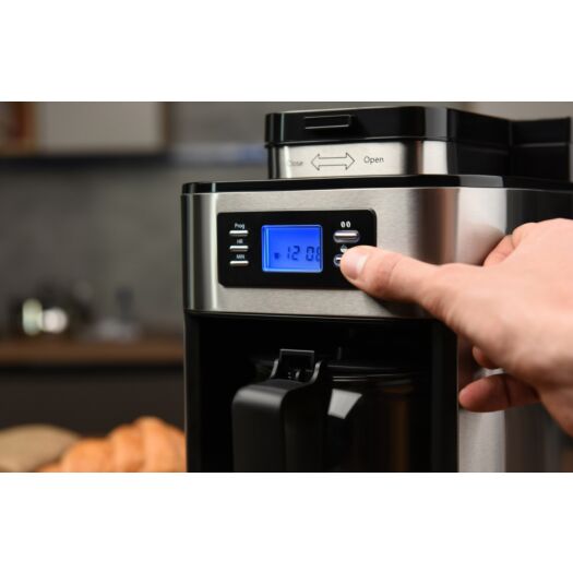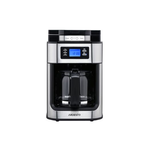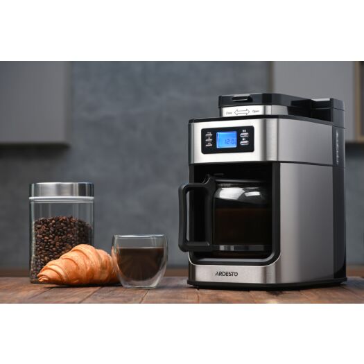 Крапельна кавоварка для меленої та зернової кави потужністю 1050 Вт. Кавоварка YCM-D1200 оснащена кавомолкою, дисплеєм з електронним управлінням та скляним кавником.