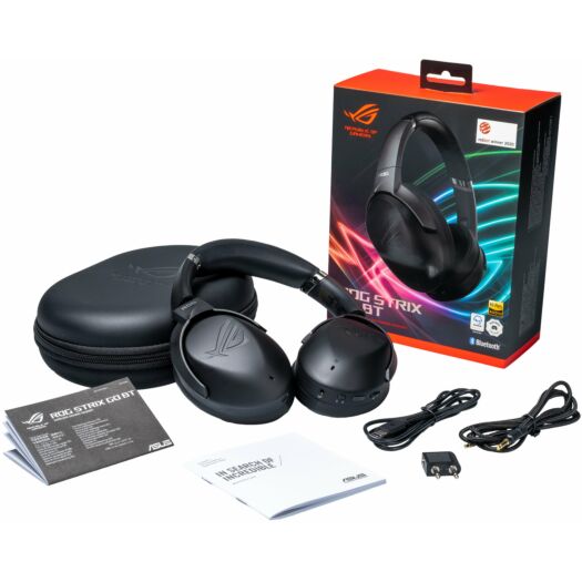 ROG Strix Go BT - ігрова гарнітура, чий високоякісний звук створює ефект занурення у віртуальний світ. Вона підтримує технологію Qualcomm aptX Adaptive для моментальної передачі аудіосигналу з високою роздільною здатністю по бездротовому інтерфейсу Bluetooth, а для підключення до різних ігрових платформ у неї також є провідний інтерфейс 3,5 мм. В гарнітурі реалізовані технологія активного шумозаглушення, яка усуває небажані фонові звуки, і ексклюзивна технологія інтелектуального шумозаглушення для мікрофона, що забезпечує кристально чисту якість голосового зв'язку.