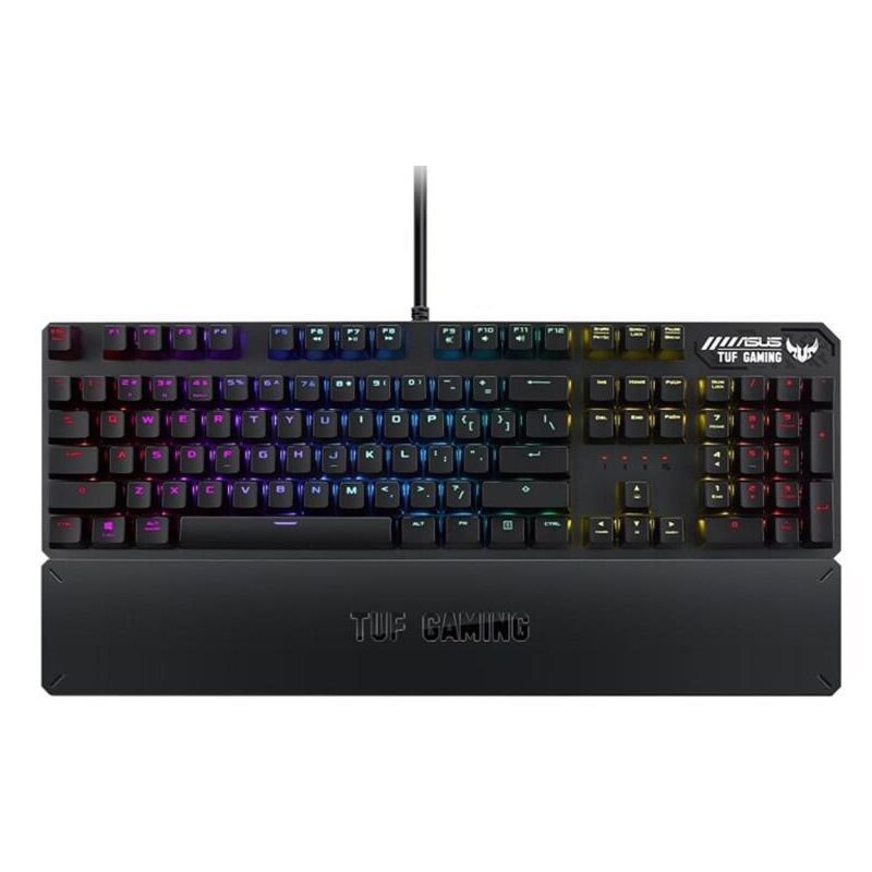 ASUS TUF Gaming K3: механічна клавіатура з RGB-підсвічуванням Aura Sync, мультимедійними клавішами, наскрізним портом USB 2.0, алюмінієвою поверхнею, підставкою під зап'ястя та вісьмома програмованими клавішами