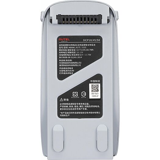 Швидкозмінний літій-полімерний акумулятор EVO Lite ємністю 6175 мАг і напругою 11,13 В забезпечує до 40 хвилин польоту. Акумулятор доступний у кольорах Autel Orange і Deep Space Gray, щоб підходити до вашого дрона EVO Lite.