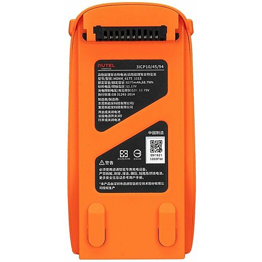 Швидкозмінний літій-полімерний акумулятор EVO Lite ємністю 6175 мАг і напругою 11,13 В забезпечує до 40 хвилин польоту. Акумулятор доступний у кольорах Autel Orange і Deep Space Gray, щоб підходити до дрона EVO Lite.