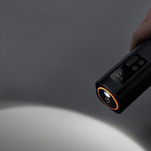 На корпусі автомобільного компресора Baseus Super Mini Inflator Pump розташовано чотири кнопки управління: увімкнення та вимкнення насоса, вбудований ліхтарик, вибір режиму накачування автоматичний/ручний (при ручному встановити потрібний тиск вручну).