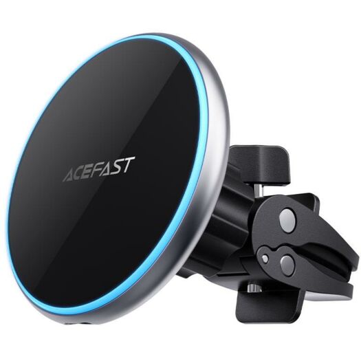 Автомобільний тримач з підтримкою бездротової зарядки від компанії Acefast. Дозволить зручно розміщувати смартфон у салоні авто для використання як навігатора чи плеєра. Одна частина тримача являє собою магніт, на який кріпиться смартфон. Інша сторона тримача встановлюється в дефлектор.