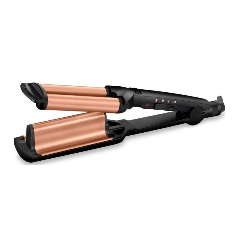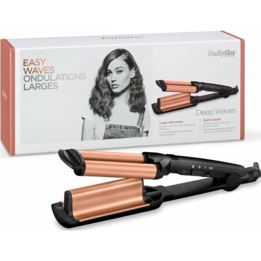 Babyliss, W2447E, Щипці гофре, 85 Вт, чорний. Відповідати трендам бьюті-сфери просто – плойка Babyliss W2447E допоможе у цьому. З її допомогою легко створити накрутку у вигляді великого гофре, що освіжить образ, надавши йому романтичної нотки. Корпус конструкції має дві частини, що змикаються, які стикаються і затискають пасмо. Планомірно пройшовшись розігрітим стайлером вертикально по всій поверхні пасма, ви отримуєте локон відповідного формату. Крім того, що ви матимете бездоганну зачіску, після використання техніки ваше волосся не постраждає.