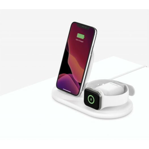 Бездротова док-станція Belkin Qi Wireless iWatch + iPhone + Airpods WIZ001vf Забезпечує підзарядку 3в1. Бездротова зарядна панель потужністю 7,5 Вт заряджає iPhone з максимально можливою швидкістю і 5Вт модуль магнітної зарядки призначене для Apple Watch. Крім того, завдяки оптимальному куту огляду під час зарядки при необхідності можна користуватися як iPhone так і Apple Watch.