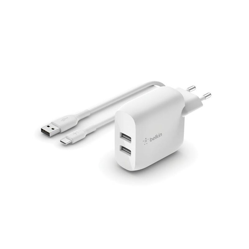 Belkin Home Charger 24W DUAL USB 2.4A, USB-C 1m, white