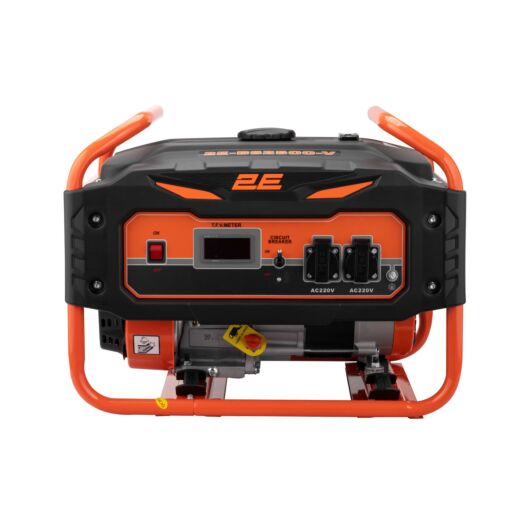 Попри номінальну потужність 2 кВт, модель 2E-BS2500-V може «видавати» максимально 2,2 кВт. Цього цілком достатньо, аби розв’язати базові завдання, як-то: заживити телевізор, холодильник, забезпечити освітлення в оселі, зарядити смартфон чи ноутбук тощо. Генератор працює на бензині, об’єм бака для пального складає 15 л. З огляду на компактний розмір (610 × 470 × 500 мм) і відносно прийнятну вагу (44 кг) однофазний генератор 2Е зручно брати із собою, скажімо, у подорож. Конструкцією передбачено дві розетки.