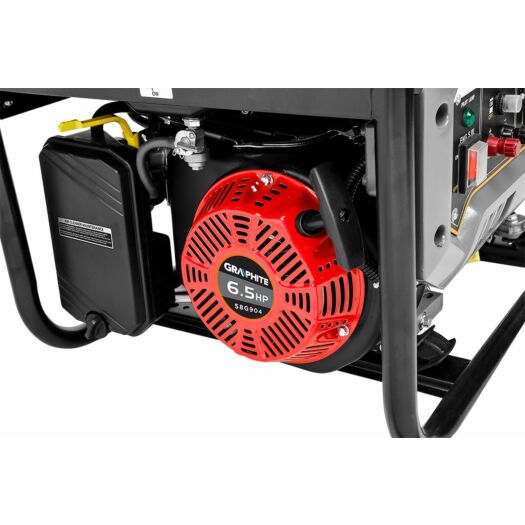 Запускається вручну тросовим стартером, оснащений чотиритактним бензиновим двигуном потужністю 4,1 кВт/6,56 к.с.