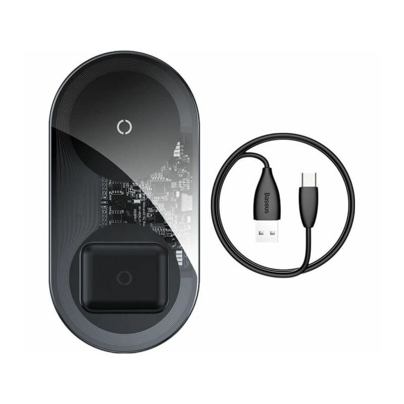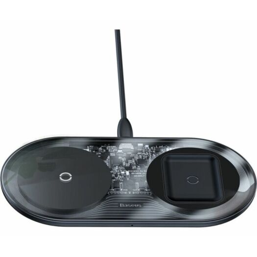 Бездротовий зарядний пристрій Baseus Simple 2in1 Wireless Charger 18W Max For Phones+Pods Transparent Black (WXJK-A01)