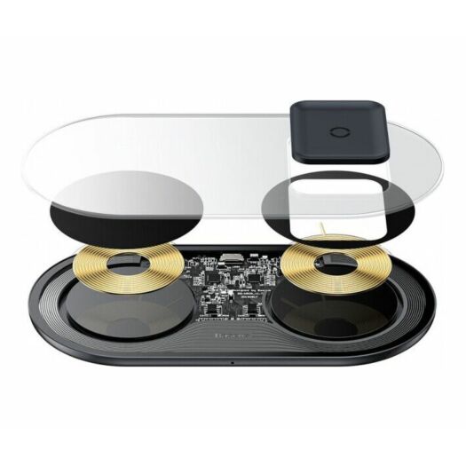 Розробники обладнали зарядний пристрій двома платформами для зарядки, завдяки чому вам більше не доведеться вибирати який гаджет важливіше. Крім того, зарядка автоматично визначає тип гаджету і підбирає оптимальну потужність - 10 Вт, 7,5 Вт, 5 Вт або 2,5 Вт. Це дозволить заповнити заряд не тільки ефективно, але і повністю безпечно.