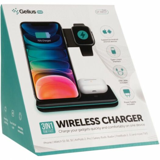 ОписБездротовий зарядний пристрій Gelius Pro GP-AWC01 Wireless Charger 3in1 15W Black