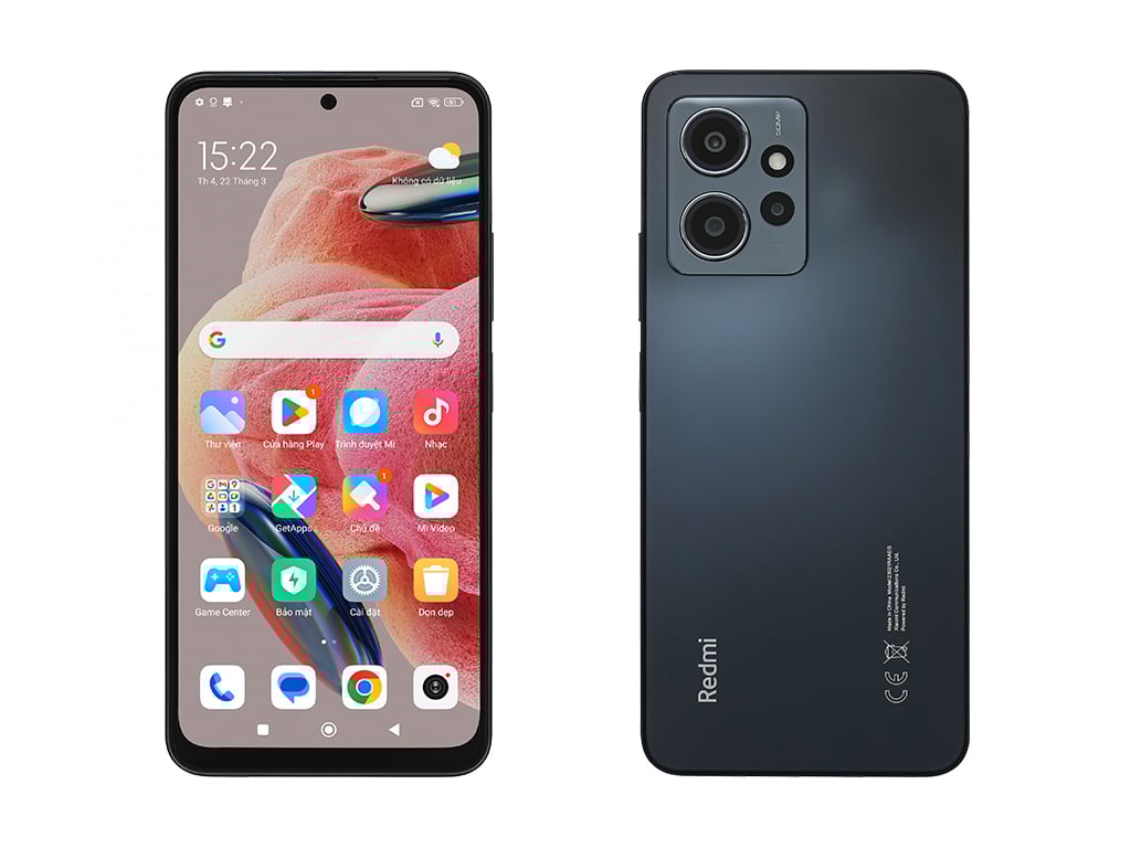 Спереду Redmi Note 12 оснащений захисним склом Corning Gorilla Glass 3, а ззаду — полікарбонатною (пластиковою) панеллю. Його дизайн включає скошену пластикову рамку та закруглені кути, що забезпечує зручне утримання в руці. Незважаючи на великий розмір екрану, телефон відчувається легким — 183,5 грама, що робить його зручним для носіння.
