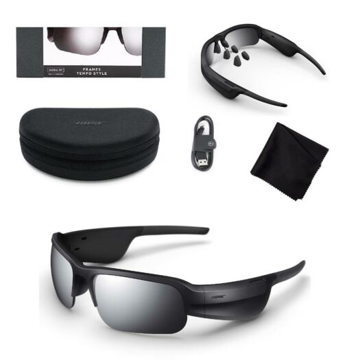 Bose Frames Tempo - спортивні сонцезахисні аудіо-окуляри з захистом від поту і бризок, аеродинамічній оправою, силіконовими носовими упорами і поляризаційними змінними лінзами.