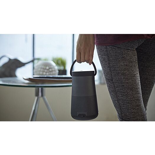 Зустрічайте нову акустичну систему SoundLink Revolve+ - кращу в своєму класі серед портативних систем, що працюють по бездротовому протоколу Bluetooth від BOSE. Система створює дисперсію звуку на 360° і забезпечує рівномірне звукове поле. Поставте її в центрі кімнати, і ви переконаєтеся, що всі навколо будуть чути її звучання однаково класно. Або ж, розташувавши її біля стіни, звук через відображення також наповнить всю кімнату, занурюючи вас в світ улюбленої музики. Завдяки ж ручці, що складається, вам легко буде взяти її з собою і улюблена музика буде завжди під рукою.