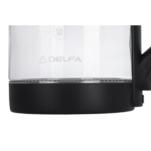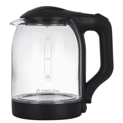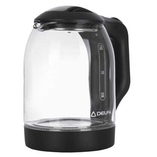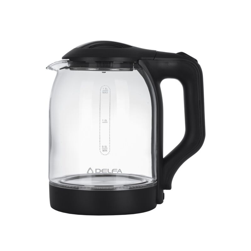 DELFA DK 2650 X — скляний електричний чайник об'ємом 1.8 л. Для вашого комфорту та безпеки передбачені такі функції: обертання основи на 360 градусів; автоматичне вимкнення під час закипання. Крізь прозорі стіни можна спостерігати, як вода закипає.