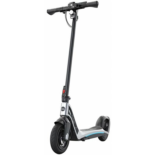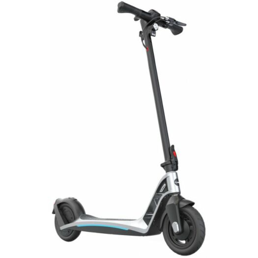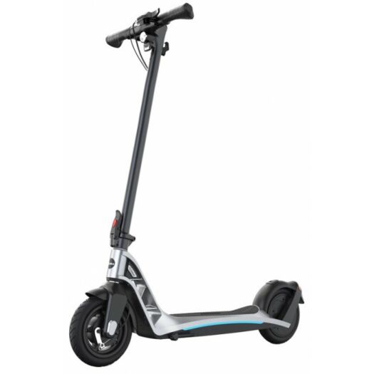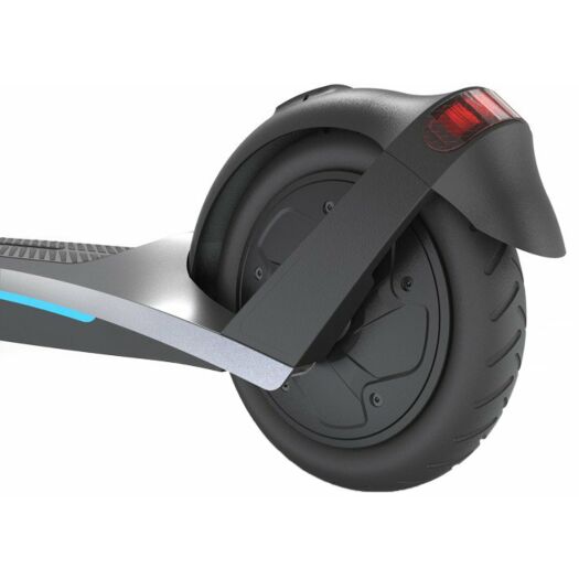 Комфортну поїздку забезпечують нейлонові покришки з пенополіуретановим наповнювачем. Самокат миттєво реагує на щонайменше натиснення ручки гальма, активуючи рекуперацію заднього колеса, а в разі екстреного гальмування, в парі з переднім барабанним механізмом, зупинка відбувається практично миттєво. Система не блокує колеса, завдяки чому ви не втратите зчеплення з дорогою.