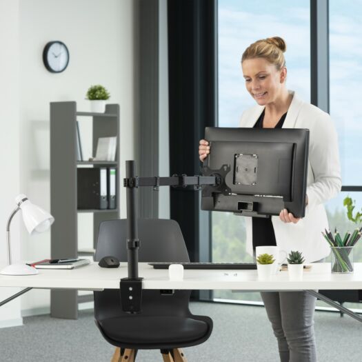 Правильний стілець та письмовий стіл створюють умови для більш ергономічного робочого середовища. Не забудьте про кронштейн для монітора, який дозволяє розташувати комп'ютер на потрібній висоті. Це сприяє комфортній роботі та ергономічній поставі. Розширте свій потенціал користувача за допомогою тримача монітора Hama.