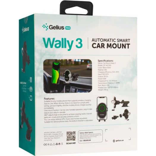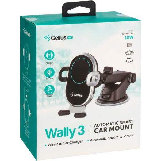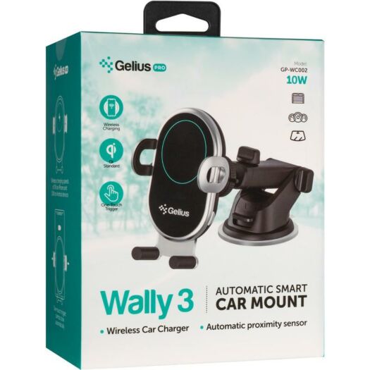 Автотримач для телефона Gelius Pro Wally 3 — функціональний аксесуар для будь-якого водія, який не тільки допоможе комфортно й безпечно користуватися застосунками у своєму смартфоні, а й зарядить ваш ґаджет без дротів завдяки наявності модуля Qi в тримачі.