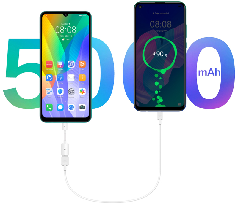 Батарея ємністю 5000 мАг з алгоритмом оптимізації енергоспоживання дозволить користуватися смартфоном багато годин поспіль. Ви зможете дивитися відео до 32 годин або до 36 годин спілкуватися в мережах 4G без підзарядки. Технологія зворотного заряду дозволяє використовувати Huawei Y6P в якості зарядного пристрою, щоб ви могли поділитися ресурсом з друзями.