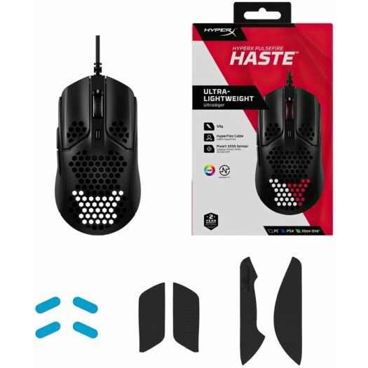 HyperX Pulsefire Haste створений для елітних геймерів, які прагнуть отримати кожну частку секунди у своєму прагненні стати найкращим. Ця повнофункціональна, чуйна миша з стільниковою структурою та вагою 59 грамів має все необхідне, але без зайвої ваги. Мікроперемикачі TTC Golden забезпечують задовільні та надійні клацання та розраховані на 60 мільйонів клацань, тому не доведеться турбуватися про пропущені входи. Гнучкий USB-кабель HyperFlex та ковзани з чистого ПТФЕ працюють разом, забезпечуючи плавне та легке ковзання, спрощуючи домінування у грі.