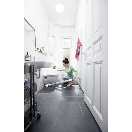 Акумуляторна підлогомийна машина для дому FC 3 Cordless завжди миє підлогу чистою водою завдяки інноваційній функції самоочищення. Його вузький корпус і шарнірне кріплення щіткової головки дозволяє помити навіть важкодоступні ділянки під меблями.