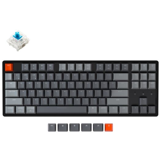K8 має ковпачки клавіш для операційних систем Windows і Mac. Версія Gateron (з можливістю гарячої заміни) поставляється з передвстановленим комутатором Gateron.