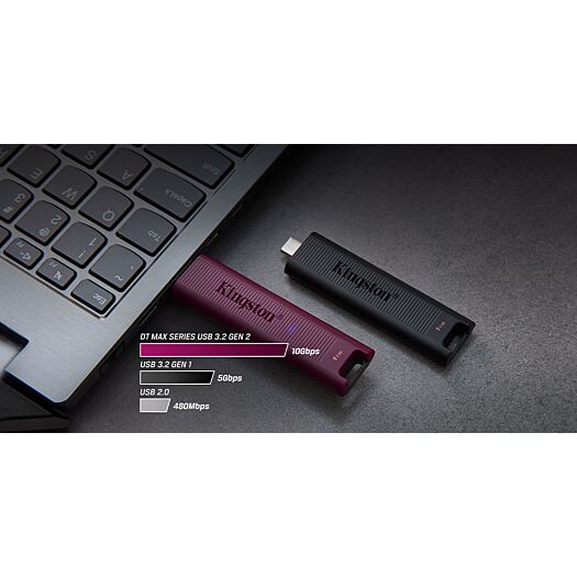 DataTraveler® Max компанії Kingston - це високопродуктивний USB-накопичувач Type-C®1, в якому використовується новітній стандарт USB 3.2 Gen 2 для забезпечення найвищих швидкостей операцій читання / запису (до 1000/900 МБ / с2. Унікальний ребристий корпус, розроблений з урахуванням портативності і зручності, захищає роз'єм, коли він не використовується, і легко переміщується одним рухом. DT Max забезпечує чудову продуктивність і розширену ємність до 1 ТБ-3, завдяки чому є ідеальним рішенням для передачі і зберігання цифрових файлів великого розміру, таких як фотографії в якості HD , відео з роздільною здатністю 4K / 8K, музичні треки та багато іншого.